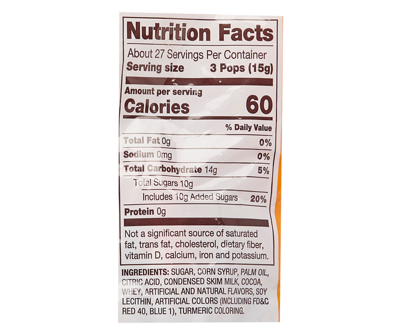 Tootsie roll pop nutrition label