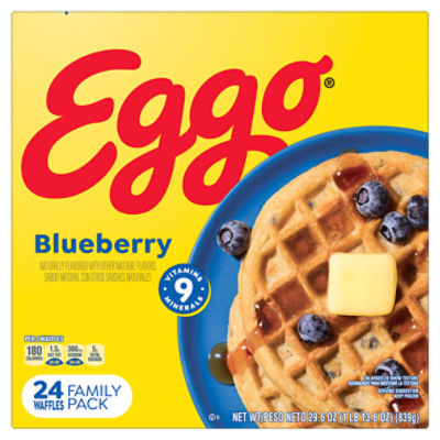 Eggo Frozen Waffles, Blueberry, 29.6 Oz, Box, Frozen Includes one, 29.6-ounce box containing 24 Eggo Blueberry Waffles. Crafted with delicious ingredients and the flavor of tasty blueberries, our waffles are a perfect balance of crispy, fluffy goodness. Convenient and easy to prepare, Eggo Blueberry Waffles …