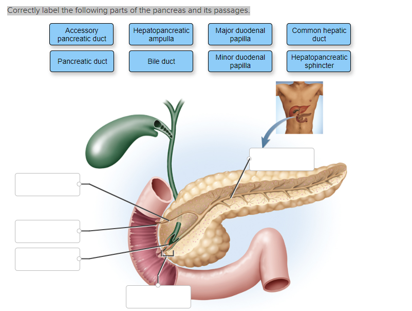 (Get Answer) - Correctly Label The Following Parts Of The Pancreas And ... Correctly Label The Parts Of The Pancreas And Its Associated Structures. 23 Accessory Pancreatic Duct 00:26:28 Pancreatic Duct Common Bile Duct Hepatopancreatic Ampulla Interlobular Duct Posted 4 months ago. Q: 14. Trace bile from it structures in order, using Figure 34.10. s secretion to the gallbladder for storage and concentration, and then ...