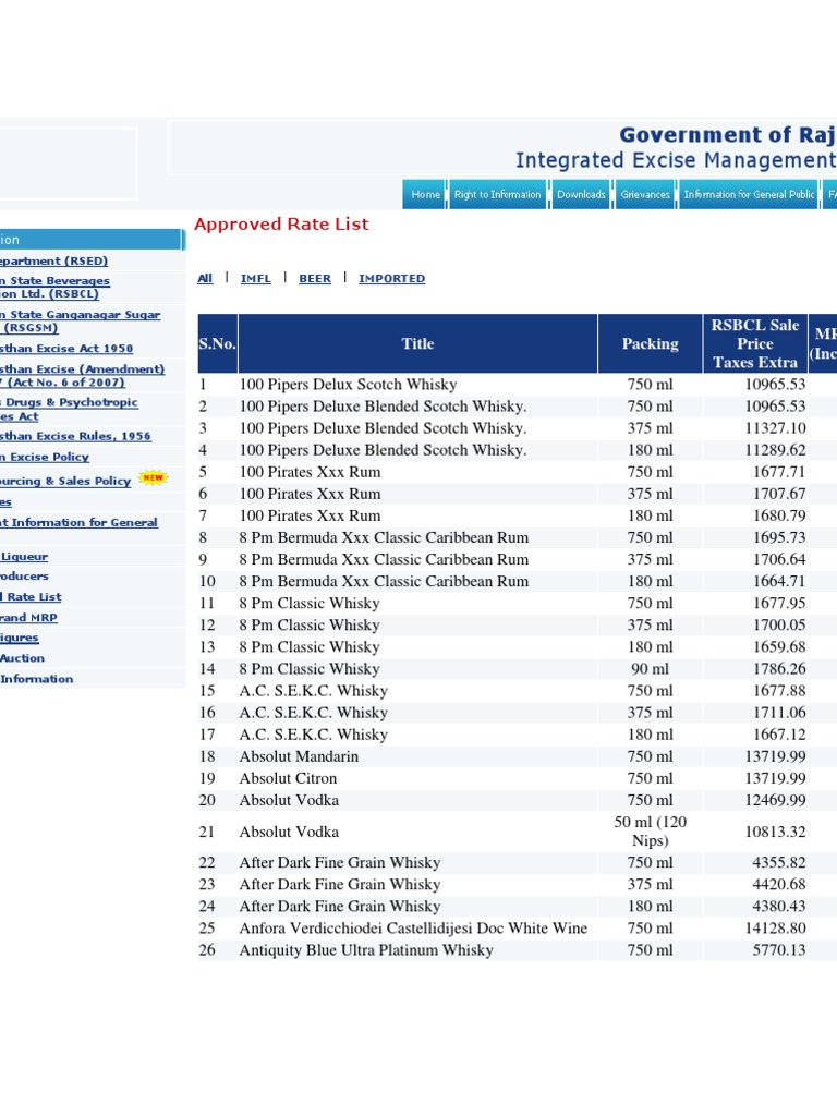 Delhi Whisky Price 2022 (Whisky / Beer / Rum/ Vodka) - Sarkari List This list contains the price of all India and foreign whisky, wine, scotch, beer and other alcohol brands which are sold in Delhi. Delhi alcohol approved rate list 2022-23 is also available at the official website of Excise and Taxation Department Delhi delhiexcise.gov.in. The complete list of Delhi liquor price is given below.