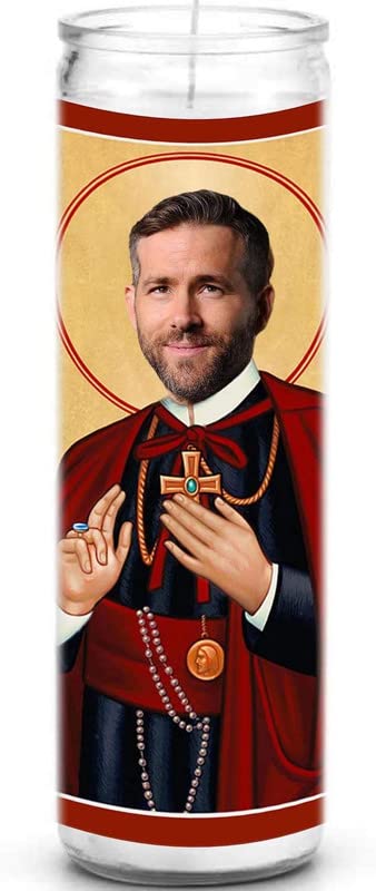 Ryan Reynolds Celebrity Prayer Candle - Funny Saint Candle - 8 inch Glass Prayer Votive - 100% Handmade in USA - Novelty Celebrity Gift