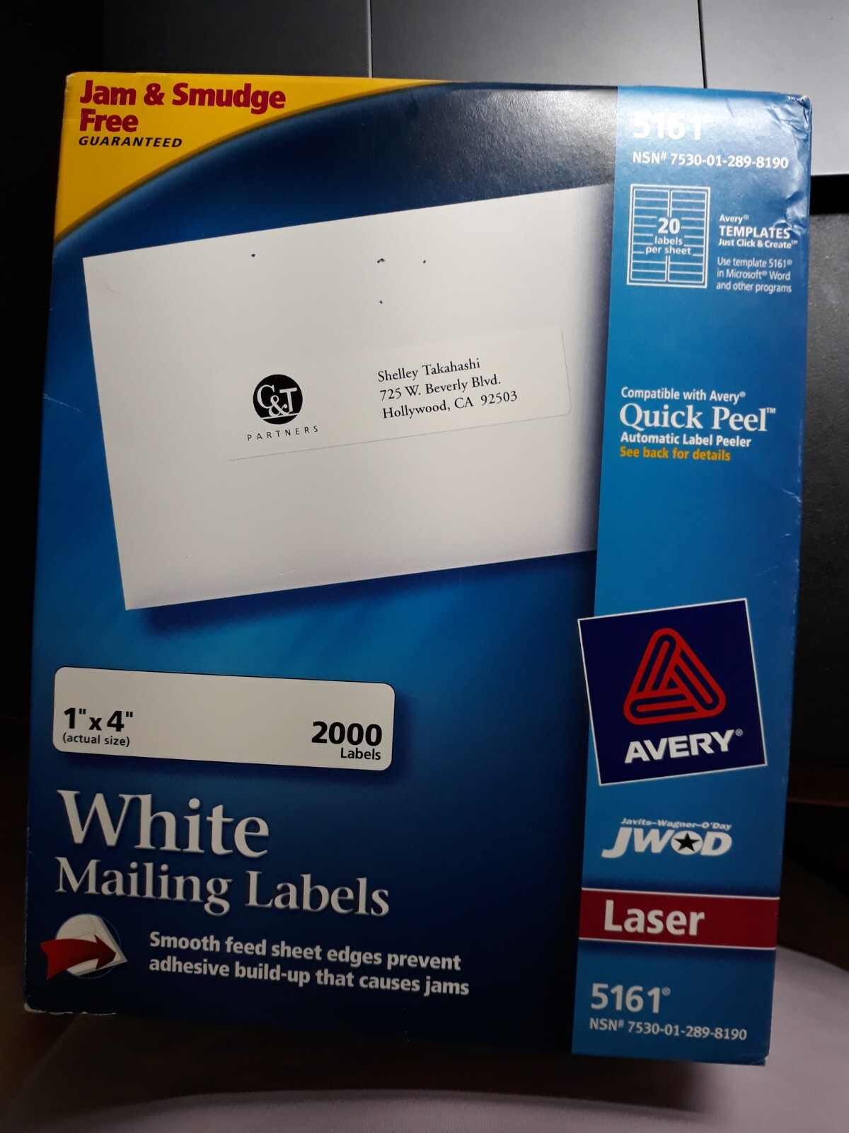 Avery 5161 Easy Peel Address Labels, White, 1" x 4", 20 Labels/Sheet ... Bright white. Easy Peel, permanent adhesive, bends easily to expose the Pop-up Edge for fast peeling, then bends back to flat for later use. Compatible with laser printers, sold separately. 1" x 4". 20 labels per sheet. Box of 100 sheets (2,000 labels)