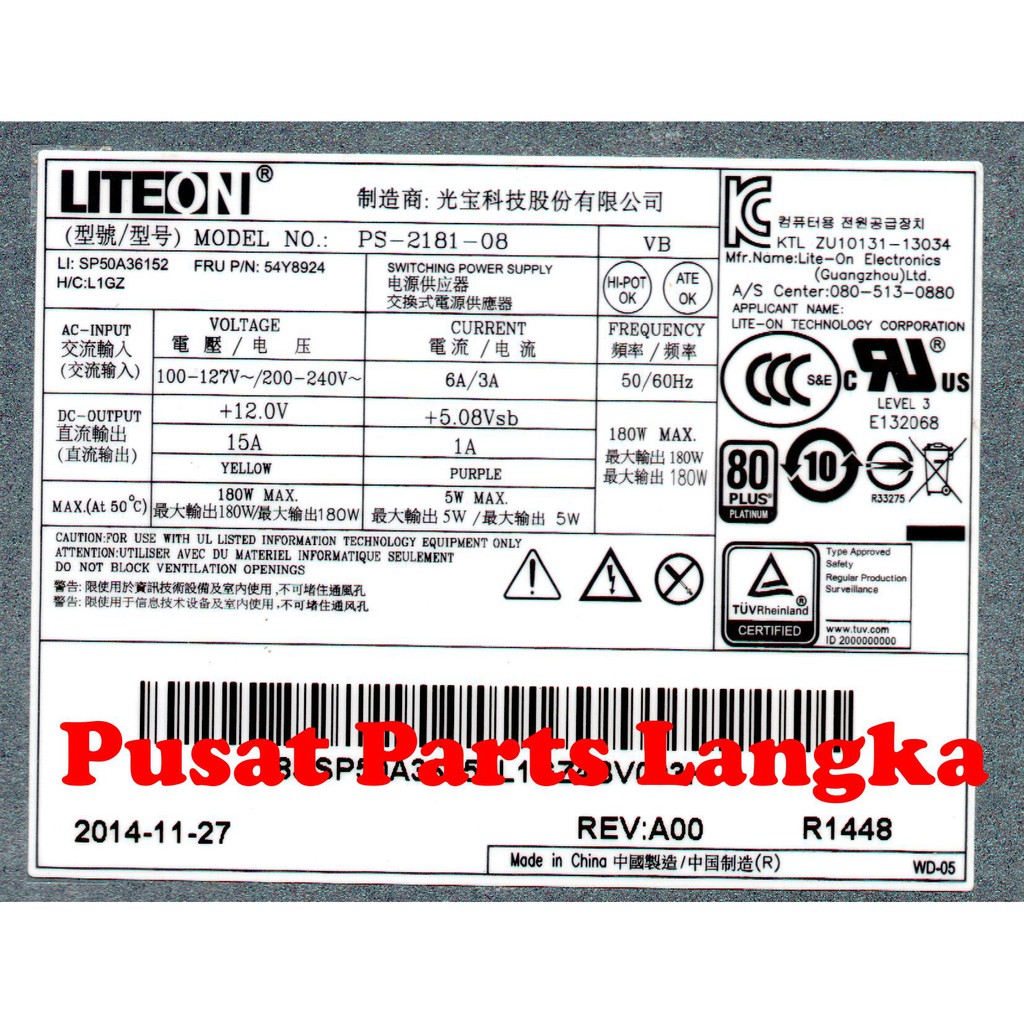Power Supply 180 Watt Lenovo PC All in One B50-30 54Y8924