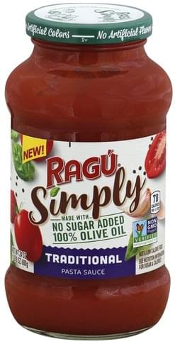 Ragu Spaghetti Sauce Nutrition Facts - SauceProClub.com Ragu Pasta Sauce703g8g2g Vitamin A 10.0 % *ragu Pasta Sauce Flavored With Meat10g0g0g Vitamin A 0.1 % Organic Ragu Pasta Sauce803g11g2g Vitamin A 10.0 % Ragu Pasta Sauce1806g24g6g Vitamin A 0.0 % Ragu Pasta Sauce703g10g2g Vitamin A 10.0 % Ragu Pasta Sauce With Meat10g0g0g Vitamin A 0.1 % Ragu Pasta Sauce Flavored W/ Meat10g0g0g Vitamin A 0.1 % Calories in Ragu Pasta Sauce - SparkPeople Ragu Pasta Sauce (1 serving) Calories: 70, Fat: 3g, Carbs: 8g, Protein: 2g Show full nutrition information *ragu Pasta Sauce Flavored With Meat (1 cup) Calories: 1, Fat: 0g, Carbs: 0g, Protein: 0g Show full nutrition information Organic Ragu Pasta Sauce (1 serving) Calories: 80, Fat: 3g, Carbs: 11g, Protein: 2g Show full nutrition information Low-Carb Spaghetti Sauce: 9 Keto-Friendly Jars to Buy - Eat This Not That Per ½ cup: 90 calories, 8 g fat (1 g saturated fat), 380 mg sodium, 4 g carbs (0 g fiber, 3 g sugar), 1 g protein There are no unexpected ingredients in this marinara sauce, only whole peeled tomatoes, onions, olive oil, and herbs and spices.
