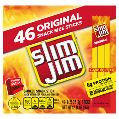 Slim Jim Original Smoked Snack Stick Pantry Pack, 0.28 oz, 46 ...
